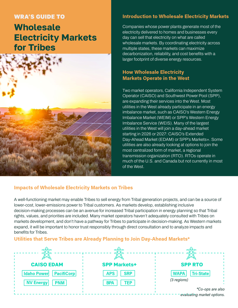 A well-functioning market may enable Tribes to sell energy from Tribal generation projects, and can be a source of lower-cost, lower-emissions power to Tribal customers. As markets develop, establishing inclusive decision-making processes can be an avenue for increased Tribal participation in energy planning so that Tribal rights, values, and priorities are included.